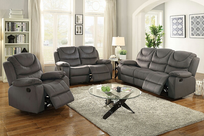 Source: F6762-63 2 pc Carlsbad II collection slate blue breathable leatherette upholstered sofa and love seat set with reclining ends
