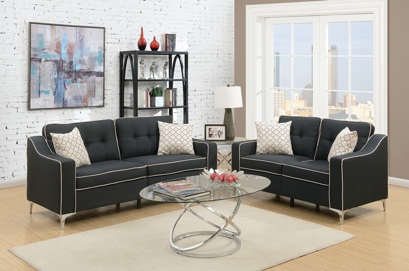 Source: F6891 2 pc Sampson black linen like fabric upholstered sofa and love seat set
