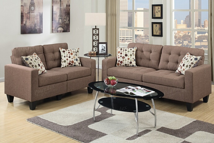 Source: F6904 2 pc collette light coffee faux linen fabric upholstered sofa and love seat set