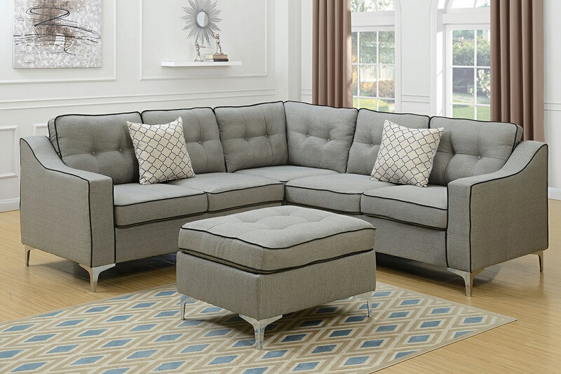 Source: F6998 4 pc Sampson II collection light grey linen like fabric upholstered sectional sofa with ottoman