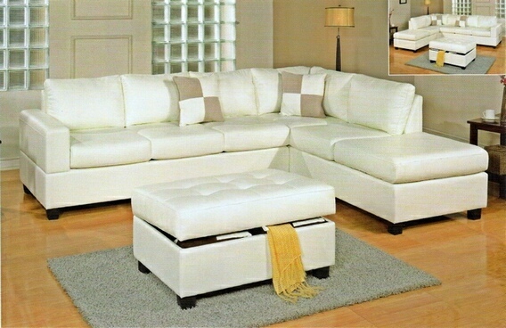 Source: F7354 3 pc cream bonded leather match reversible sectional sofa with free storage ottoman