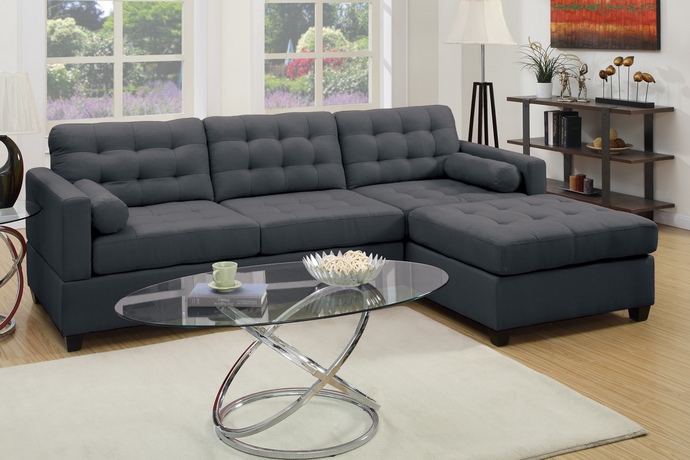 Source: F7587 2 pc manhattan reversible slate black linen like fabric sectional sofa with reversible chaise