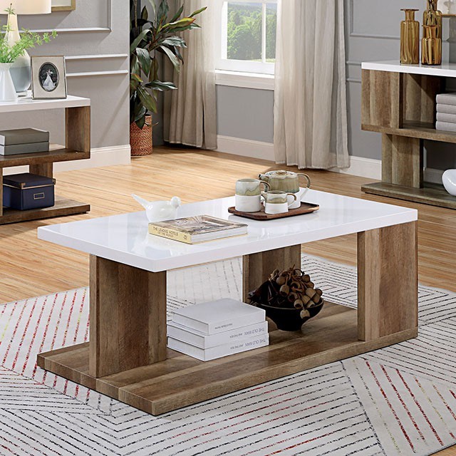 FOA4496C Brayden studio yoel majken natural tone wood coffee table with high gloss white finish top