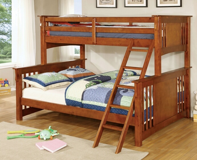 Source: Furniture of america CM-BK604-OAK Spring creek iii oak wood finish twin over queen bunk bed with front angled ladder