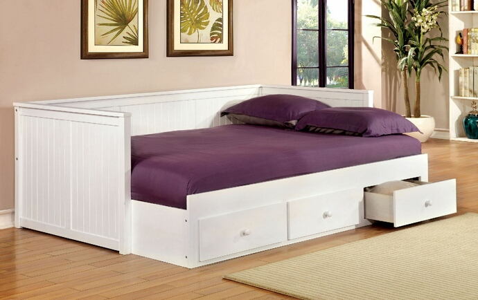 Furniture of america CM1927WH Wolford collection white finish wood frame full size day bed with drawers