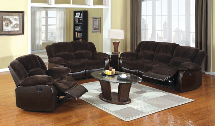 Source: Furniture of america CM6556CP-SL 2 pc. classic style winchester 2 tone dark brown champion fabric and leather like vinyl reclining sofa and love seat set