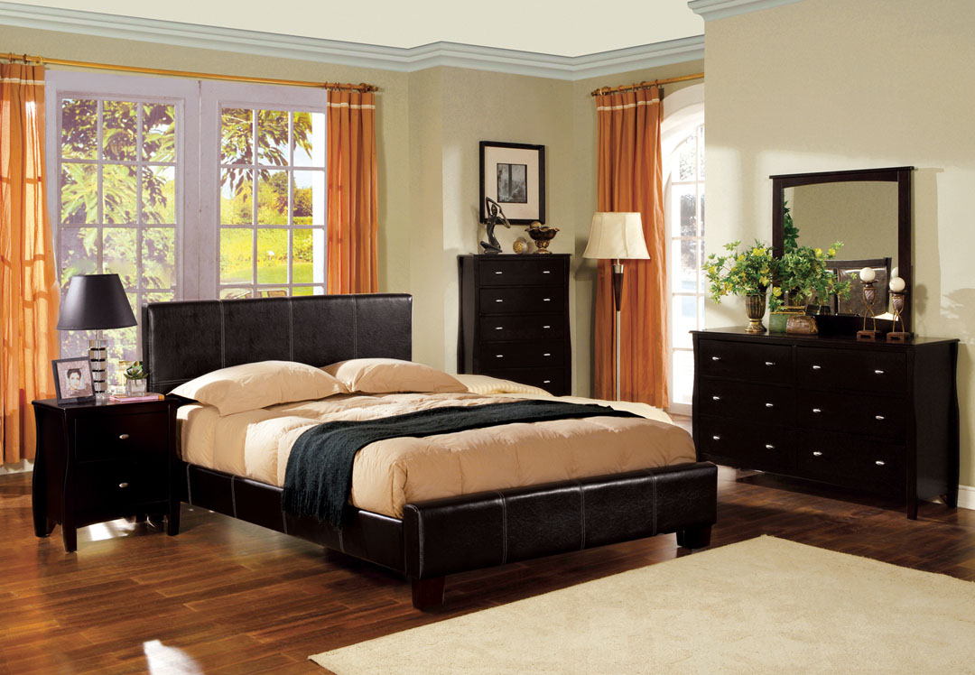 Source: Furniture of america CM7010Q 5 pc uptown platform espresso wood finish queen bedroom set with leatherette head and footboard