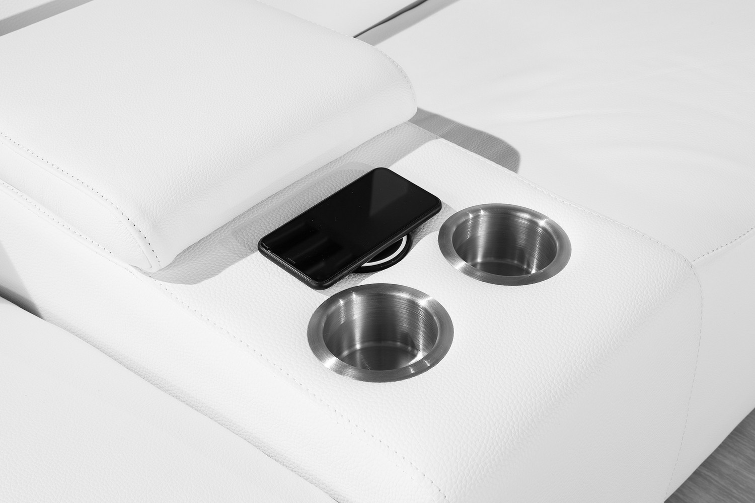 Global United 2679WH-6PC 6 pc White Genuine leather power reclining sectional sofa adjustable headrests