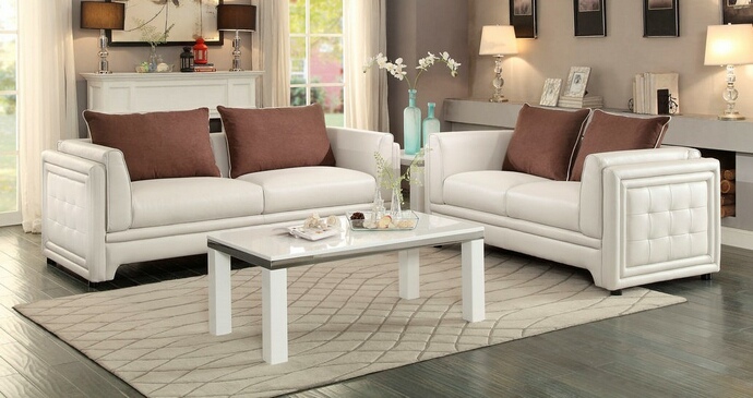 Source: Home Elegance 8478-SL 2 pc azure collection off white airehyde upholstered sofa and love seat set with tufted sides
