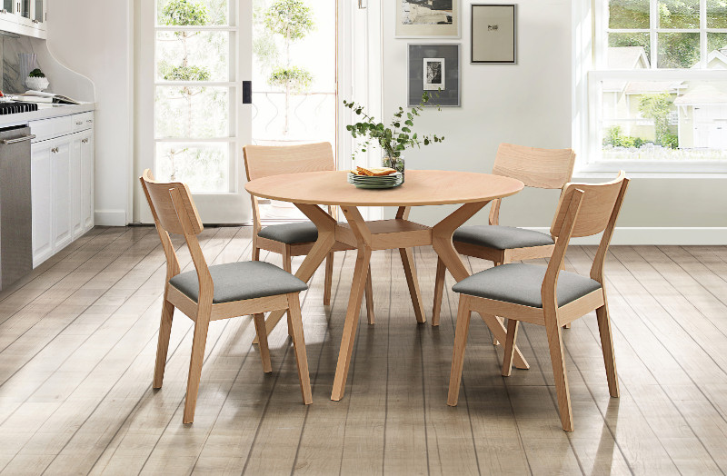 Home Elegance HE-5576RD-5PC 5 pc Hamar natural finish wood mid century modern 48″ round dining table set