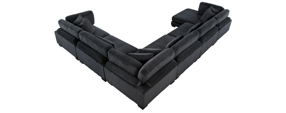 Homelegance 8555BK-2AC3CR-OT 6 pc Traverse black corduroy fabric modular sectional sofa with ottoman. This set includes 3 – corner wedges 2 – armless chairs and 1 – ottoman. Can be configured in many different patterns. Additional pieces can also be purchased to make this set bigger. Sectional as shown measures 135″ x 135″ x 34.5″ H. Wedge measures 45″ x 45″ x 34.5″. Armless chair measures 45″ x 45″ x 34.5″ H. Ottoman measures 45″ x 45″ x 18″ H. Some assembly required.