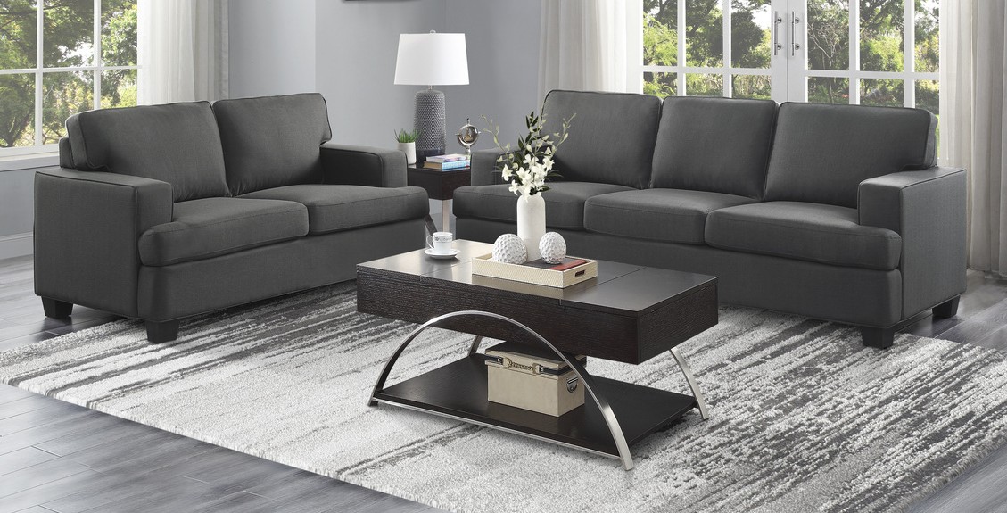 Source: Homelegance 9327CC-SL 2 pc Elmont charcoal textured fabric sofa and love seat set