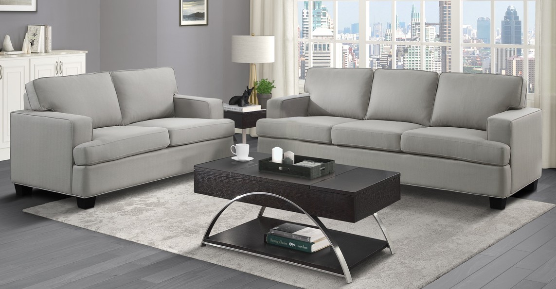 Homelegance 9327KH-SL 2 pc Elmont khaki textured fabric sofa and love seat set. This set includes the Sofa and Love seat with squared arms. Sofa measures 84″ x 34.5″ x 35″ H. Love seat measures 62″ x 34.5″ x 35″ H. Some assembly required.