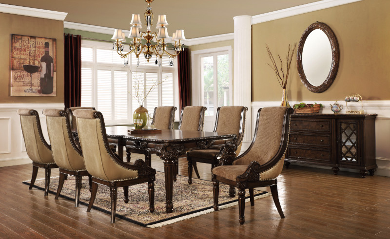 Source: Mc Ferran MF-D4000-7PC 7 pc Britain cherry finish wood dining table set scoop chairs