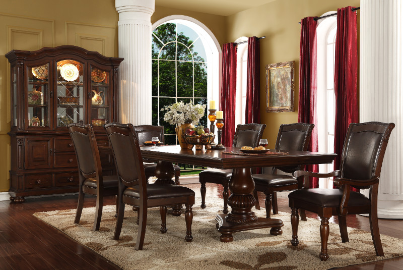 Source: MF-D7900-7PC 7 pc Melina dark brown finish wood double pedestal dining table set