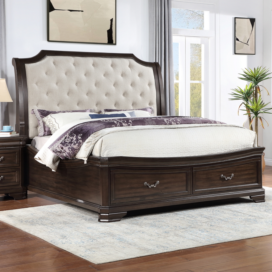 ***New Years Month Sale Going On Now***Discounted Price When You Add To Cart up to 35% off. Click Acima Leasing Easy Lease and Application Process at ambfurniture.com00-493B-4PC 4 pc Lyndhurst walnut finish wood country sleigh fabric upholstered headboard style queen bed set footboard drawers on sale at ambfurniture.com