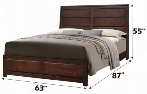 25790Q-4PC 4 pc Oberreit walnut finish wood plank style headboard queen bedroom set. This set includes the Bed, Nightstand, Dresser and mirror. Bed measures 87″ x 63″ x 55″ H. Nightstand measures 24″ x 16″ x 24″ H. Dresser measures 59″ x 16″ x 40″ H. Mirror measures 41″ x 34″ H. Chest also available separately at additional cost. Also available in Eastern king. Some assembly required.