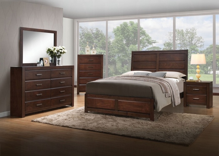 Source: 25790Q-4PC 4 pc Oberreit walnut finish wood plank style headboard queen bedroom set