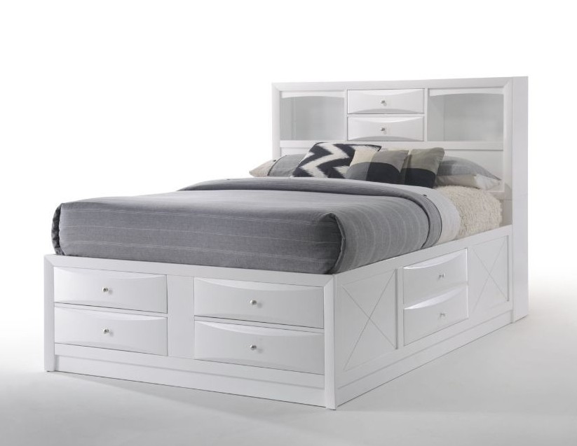 Source: Acme 21700Q-4PC 4 pc Ireland white finish wood storage headboard underbed drawers queen bed set
