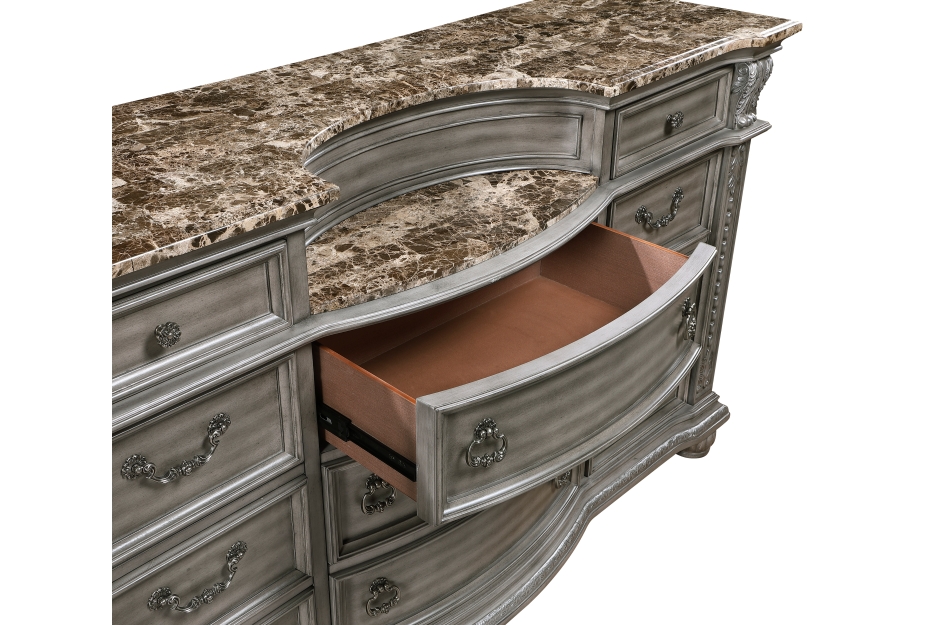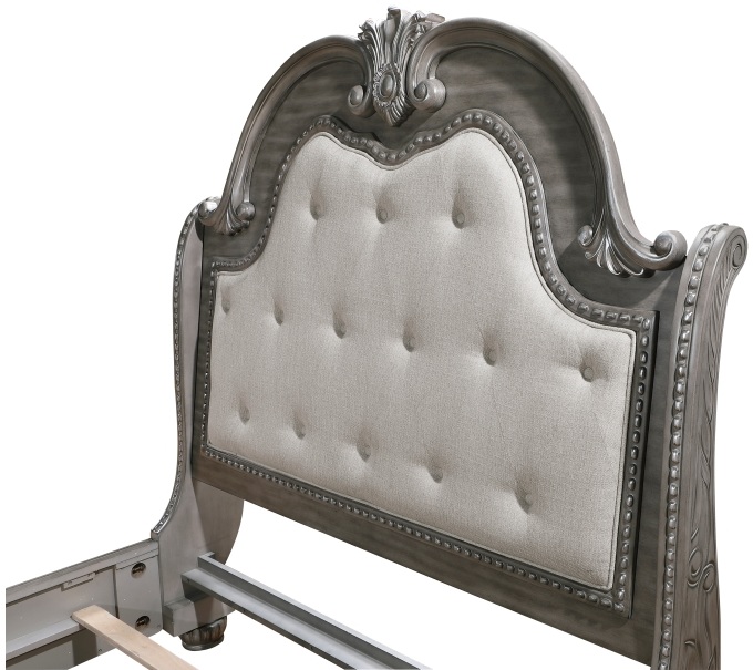 Homelegance 1583-4PC 4 pc Bennington grey finish wood tufted headboard and footboard sleigh style queen bedroom set. This set includes the Bed, Nightstand, Dresser, Mirror. Bed features button tufted fabric upholstered headboard and footboard. Bed measures 67.5″ x 94.5″ x 70″ H. Nightstand measures 34.5″ x 19.5″ x 32.5″ H. Dresser measures 68.5″ x 21″ x 41″ H. Mirror measures 51.5″ x 3.5″ x 49.5″ H. Chest available separately at additional cost and measures 44.5″ x 20″ x 57.5″ H. Also available in Cal King and Eastern King. Some assembly required.