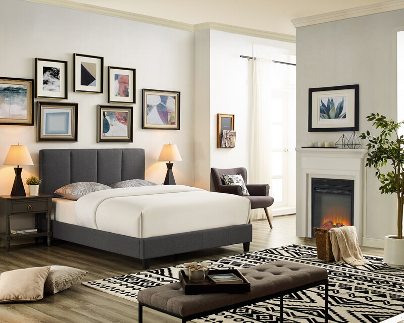 Source: OAH D3005 Sterling steel gray linen like fabric queen low-profile bed frame set