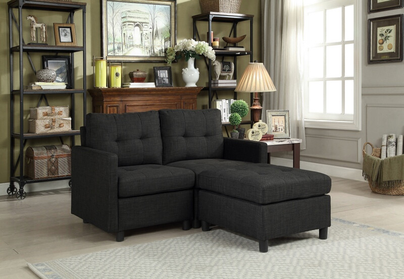 Source: OAH D6012-8 3 pc Clayton Ash black linen like fabric modular sectional sofa