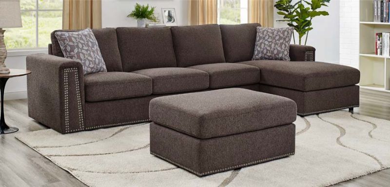 4 pc Latitude Run Shanon chocolate chenille fabric modular sectional sofa set with chaise. This set features a chocolate chenille fabric upholstery with nail head trim accents. This set includes 1 – RAF chaise, 1 – Armless sofa, 2 – Arms , 1 – ottoman. Additional pieces also available separately. Set as shown measures 122″ x 62″ L chaise x 37″ x 34″ H. Ottoman measures 34″ x 26″ x 19″ H. Some assembly required.