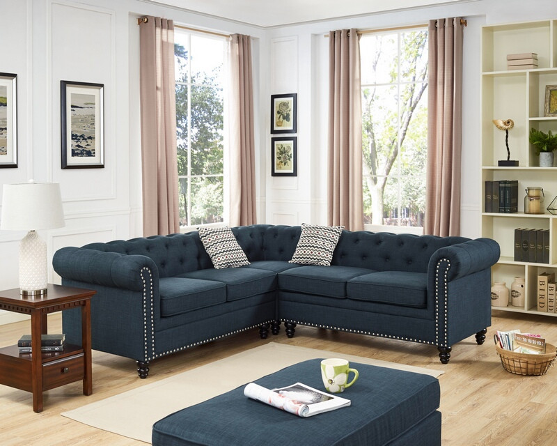 Source: OAH D6132-3 3 pc Jeanie dark blue dorris fabric modular sectional sofa nail head trim