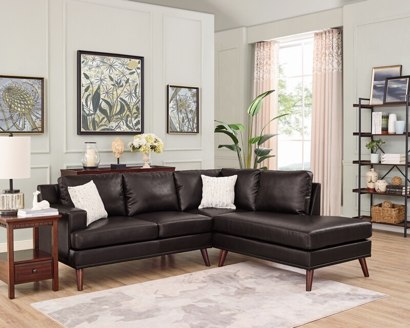 2 pc Denver brown faux leather sectional sofa with chaise. This set includes the 2 pc sectional sofa , LAF love seat, RAF chaise. Sectional measures 89″ x 80″ L chaise x 34″ D x 35″ H. Ready to assemble. Requires assembly.