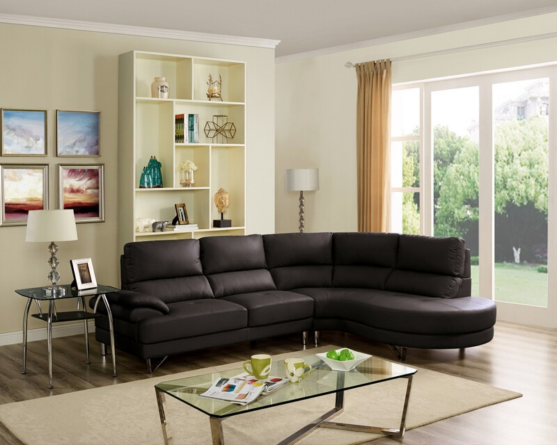 Source: OAH D6161 2 pc Navelle brown faux leather sectional sofa rounded chaise