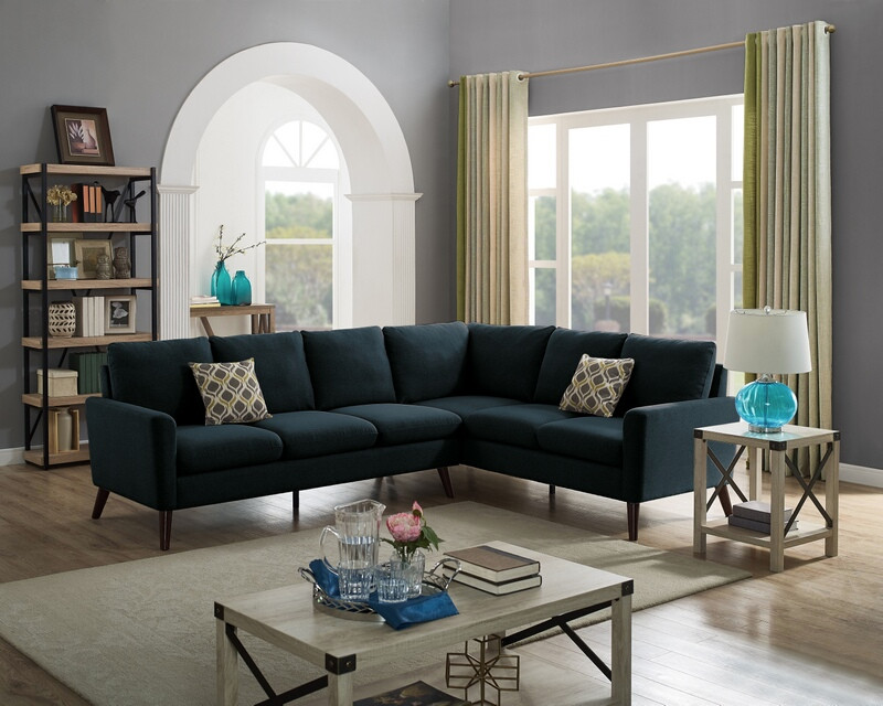 Source: OAH D6990 2 pc Marilyn dark blue linen like fabric sectional sofa