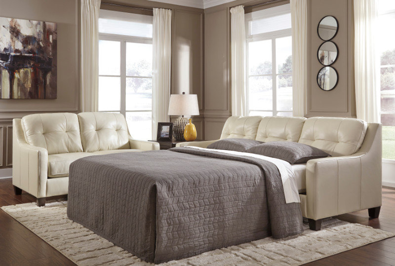 Okean collection galaxy colored leather match upholstered queen sleeper sofa with squared arms. Sleeper sofa includes the Sofa with queen sleeper pull out with mattress included. Measures 86″ x 41″ x 41″ H. Some assembly may be required.