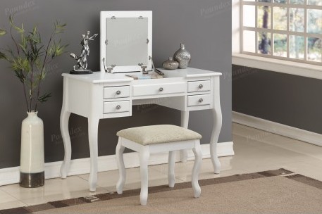 Source: Poundex F4148 3 pc Angelica antique white finish wood make up bedroom vanity set flip up mirror