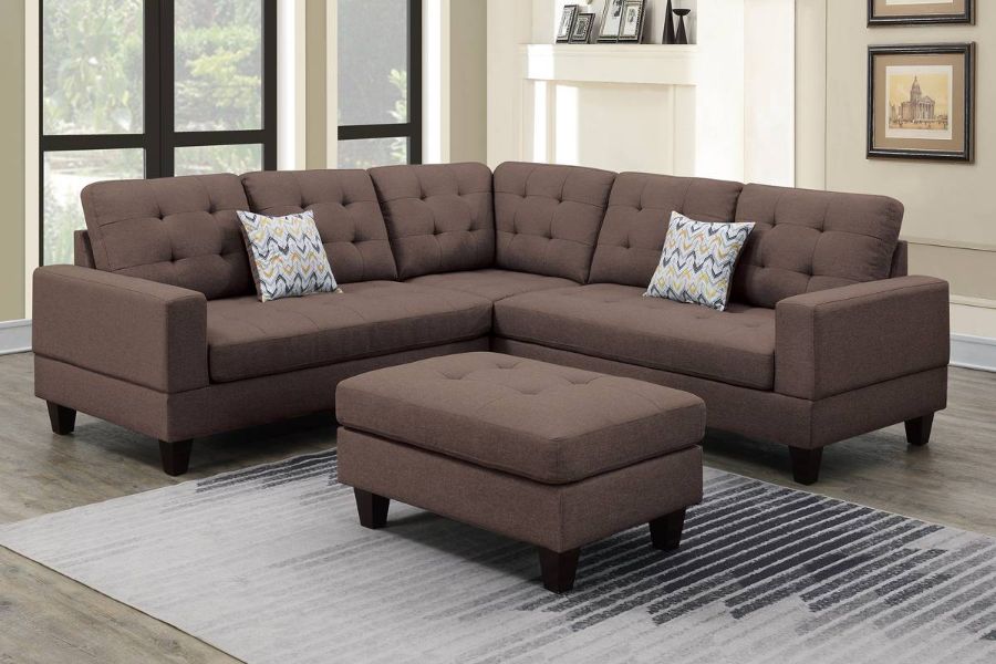 Source: Poundex F6471 3 pc Biloxi dark coffee polyfiber fabric sectional sofa and ottoman