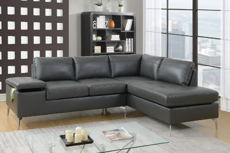 Source: Poundex F6520 2 pc Orren ellis warrick gray faux leather reversible chaise sectional sofa set