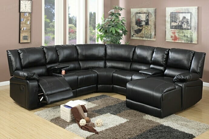 Source: Poundex F6745 5 pc collette collection black bonded leather upholstered sectional sofa with chaise and recliners
