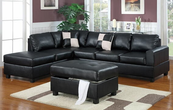 Source: Poundex F7355 3 pc black bonded leather match reversible sectional sofa with free storage ottoman