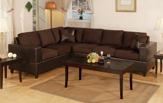 Source: Poundex F7631 2 pc chocolate microfiber two tone reversible sectional sofa with free pillows