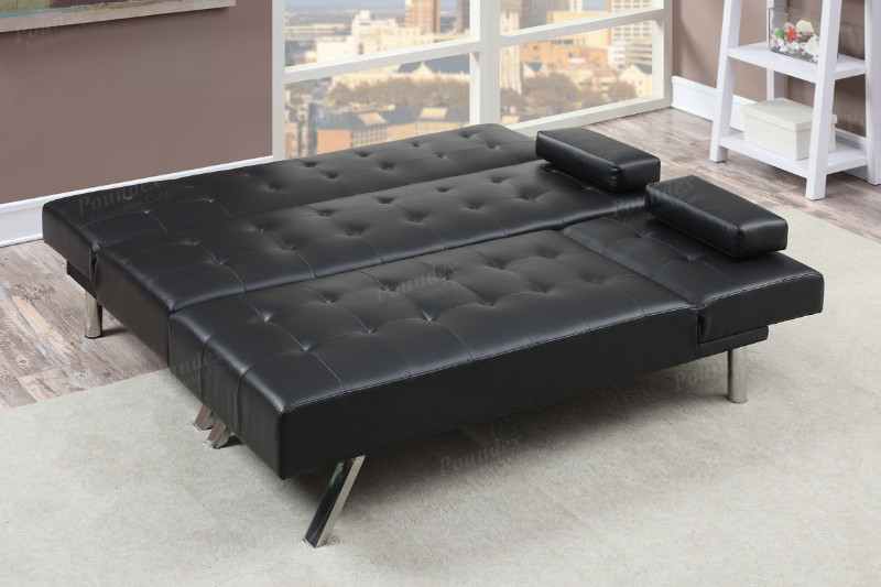 Source: Poundex F7886 2 pc alisian ii black faux leather folding sofa reversible chaise futon sectional set