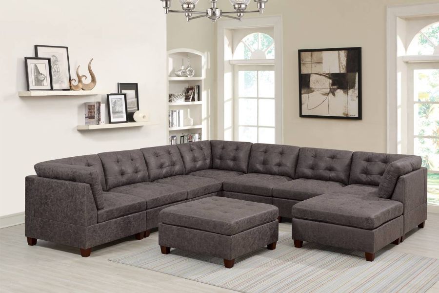 Source: Poundex F845 9 pc Latitude run mckenny dark brown leather like fabric modular sectional sofa