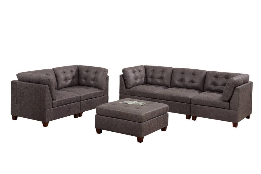Source: Poundex F850 6 pc Latitude run mckenny dark brown leather like fabric modular sectional sofa