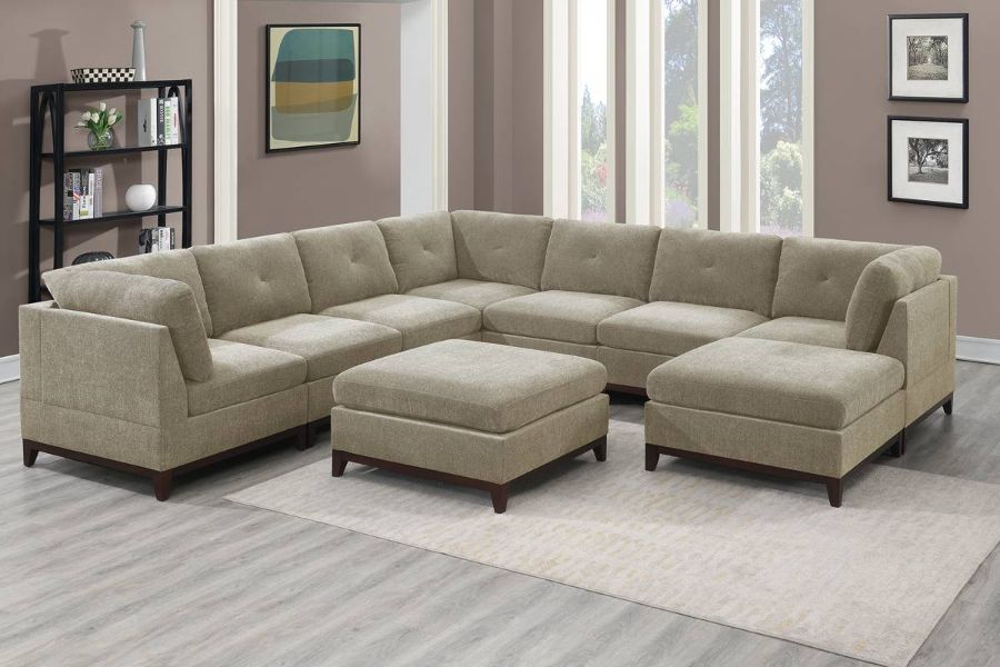 Poundex F867 9 pc Latitude run mckenny camel chenille fabric modular sectional sofa