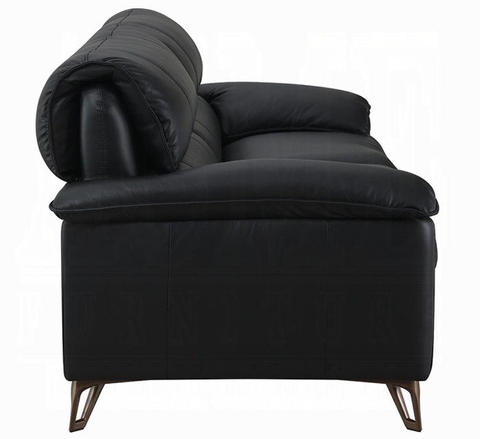 Acme LV03700-01 2 pc Eilene black top grain leather mid century modern sofa and love seat set. This set includes the Sofa and love seat with metal legs. Sofa measures 109″ x 39″ x 39″ H. Love seat measures 83″ x 39″ x 39″ H. Chair also available separately at additional cost and measures 43″ x 39″ x 39″ H. Some assembly may be required.