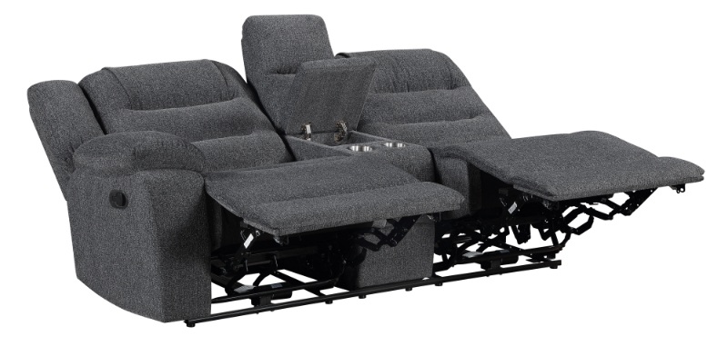 Redondo-PW-Sect 3 pc Redondo dark grey fabric sectional sofa set with power motion recliner ends and cup consoles with storage. This set includes the LAF Sofa with cup console, corner wedge and RAF Sofa with cup console. Sectional measures 122″ x 122″ x 40″ x 40″ H. Also available with manual motion recliners. Some assembly required.