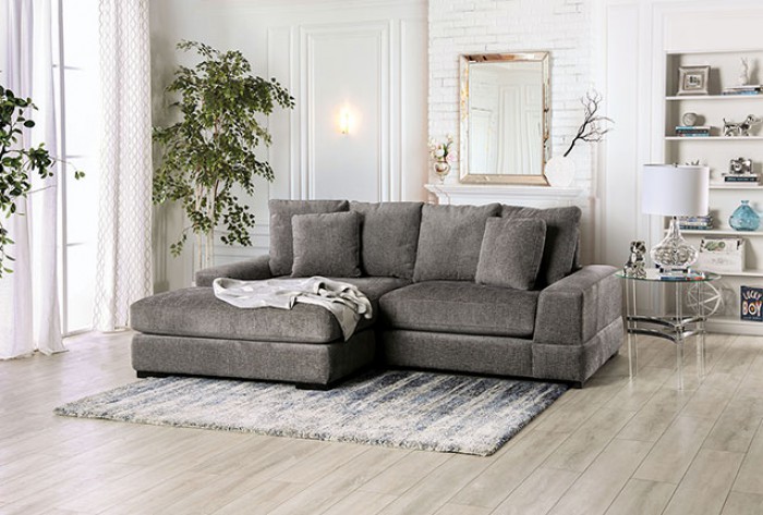 Source: SM9111 2 pc Canora grey Ainsley charcoal gray chenille fabric sectional sofa with chaise