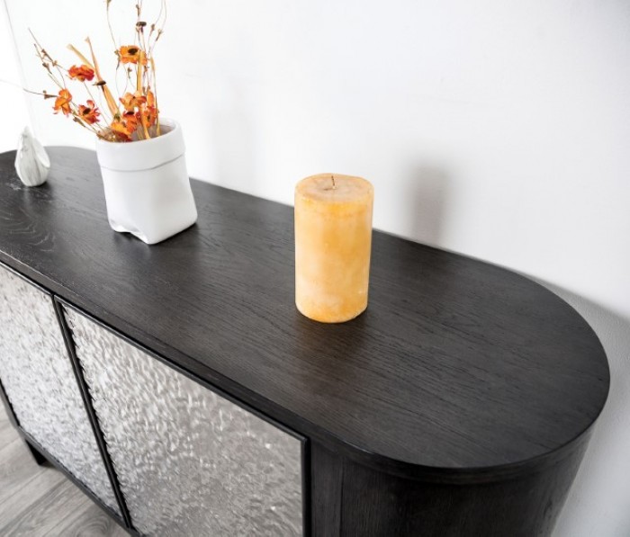FM39004ES-SV2 Sterling west ash gray finish wood contemporary server sideboard buffet cabinet dented stainless steel panels. Server measures 60″ x 17″ x 34″ H. Some assembly required.
