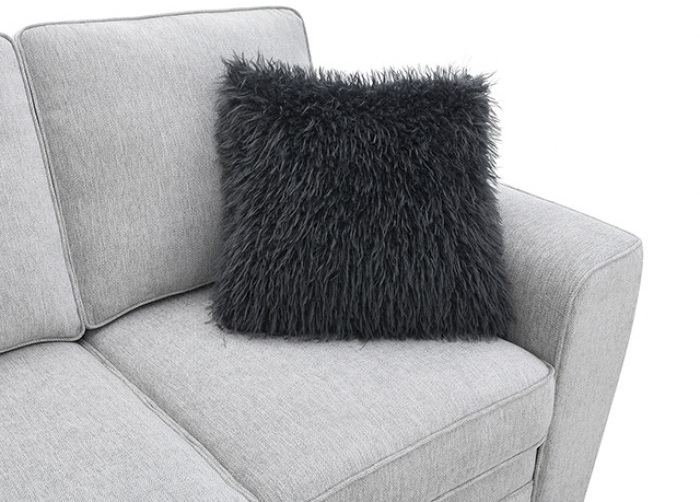 FM64009LG-2PC 2 pc Enea light grey woven chenille fabric sofa and love seat set multi color throw pillows. Sofa and Love seat features multi color patterned throw pillows. Sofa measures 84.3″ x 34.6″ x 37″ H. Love seat measures 63.8″ x 34.6″ x 37″ H. Some assembly may be required.