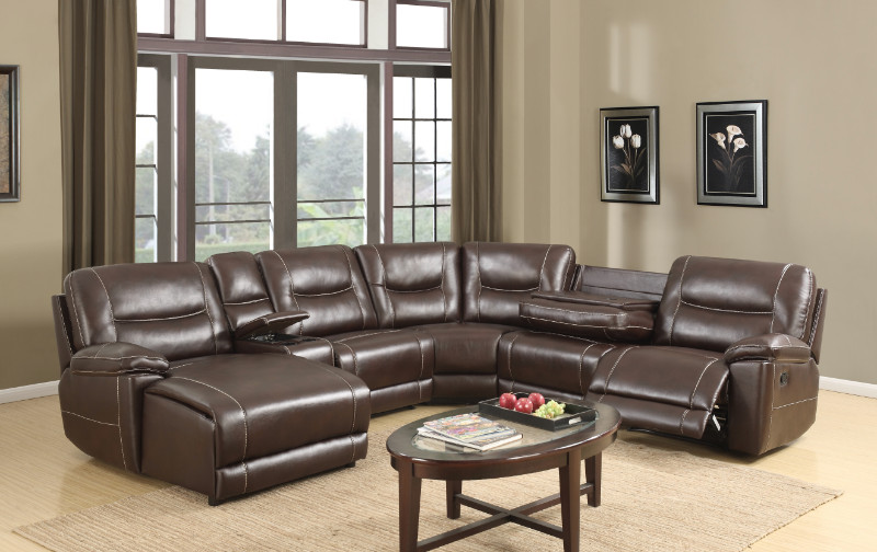 Source: UI-99170-6PC-Brown 6 pc Chatanooga collection brown leather gel upholstery sectional sofa with chaise and recliners